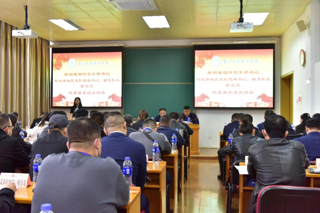 2月22日,培训班举行了开班仪式。厦门大学经济学院副院长彭水军代表学院致欢迎辞,学院依托厦门大学的学科、师资、智力等优势,以“知识创造价值,学术服务社会”为宗旨,坚持社会效益优先,采取课堂面授与实战教学相结合的模式,主动服务国家发展建设的大局需要,主动适应各级各类干部自身发展的需要,致力于为学员提供优秀的师资、课程和服务。彭院长代表学院感谢总队党委的信任,欢迎来自大美新疆的国土卫士加入厦门大学,并对成功举办此次培训班充满信心。
