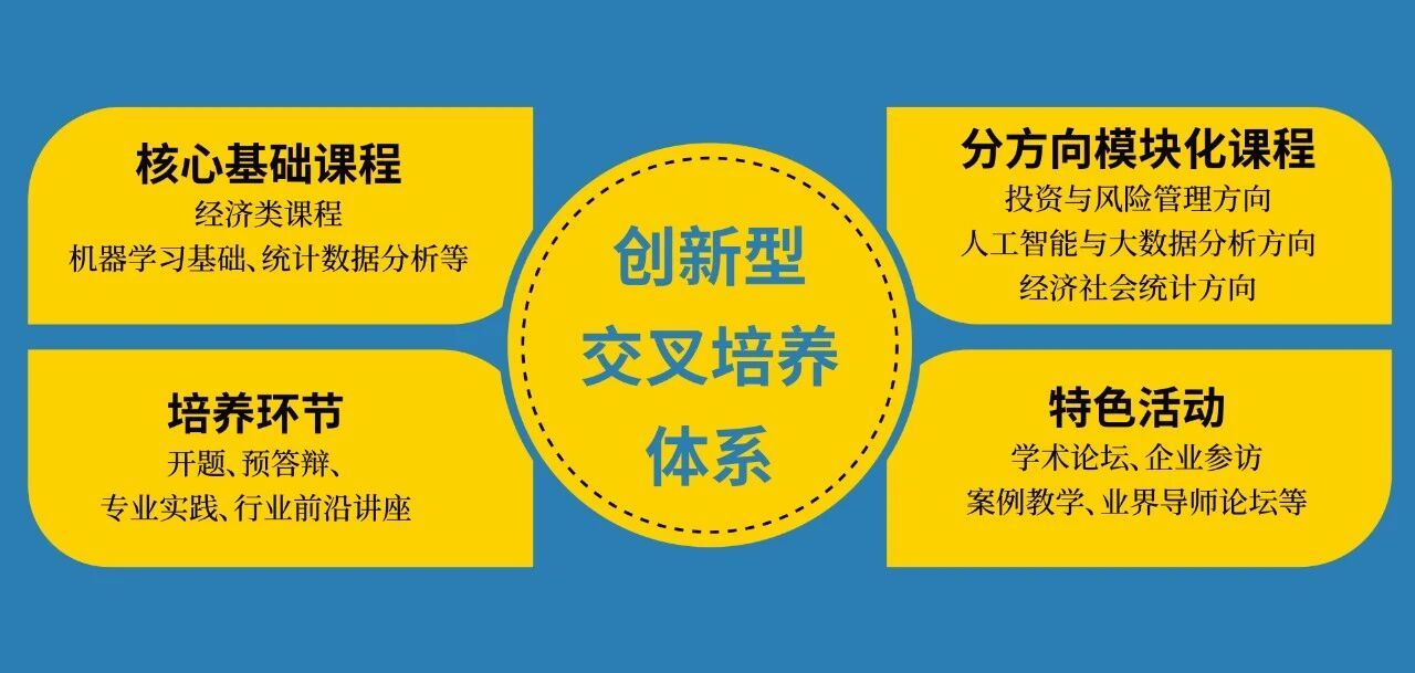 课程内容紧密结合大数据与人工智能时代背景,采用跨学科创新型课程设置。在夯实学生经济学、统计学知识基础上,强化其在机器学习、数据分析与商业分析、学科交叉与行业应用等维度的核心竞争力,还将开展专题讲座、学术论坛、企业参访、案例教学、企业家座谈等特色活动,培养兼具多维能力的复合型应用型人才。项目拟开设投资与风险管理、人工智能与大数据分析、经济社会统计三个培养方向。